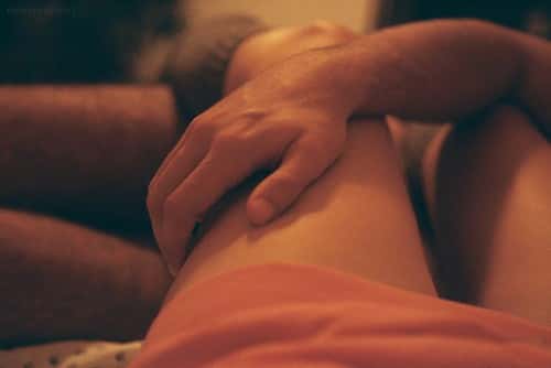 最后再慢慢去接近yinchun,中指及无名指分别放在两边的yinchun上。首先用指尖去轻轻触周边,并振动加强刺激,接着两指轻轻顺时针绕圈,绕两三分钟。