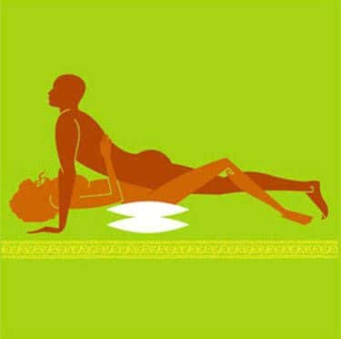 女票躺在床上,点两个枕头在臀部下方,双腿略微弯曲,双头可以伸举在头侧,也可以抱住南票的身体,总之是让你的上半身有呼吸的空间。