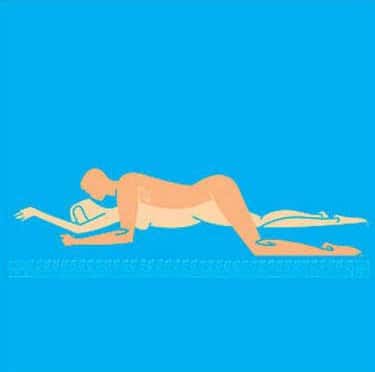 女方平躺在床上,保持双腿双手伸直,男票则可以霸气得压制上身,从后慢入。