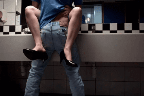 如果进入隔间,男生可以采用坐姿,坐在马桶上,面对面抱着她,抓住她的臀部抬起她,然后回落,让她好像骑马一样,她将会获得最好的高潮之一。