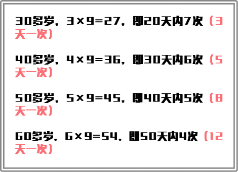 但是对于夫妻而言,姐还是建议有规律的性生活,可以让夫妻关系更加和谐!在此推荐一个啪啪频率: