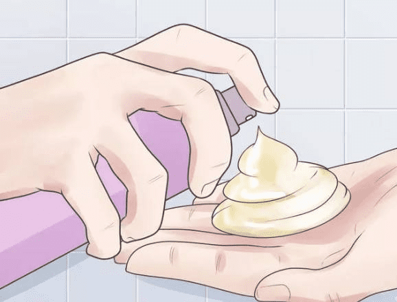 ②涂上刮毛啫喱或乳霜。但注意刮毛啫喱或乳霜只能涂抹在耻骨处,不能涂到阴道周围。