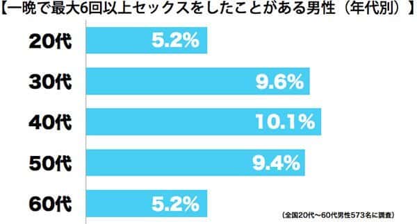 这当中老是说“三次根本不够”的是30-50多岁的男性。回答一晚上来6次以上的40多岁男性有10.1%,数值约是20多岁人的两倍。