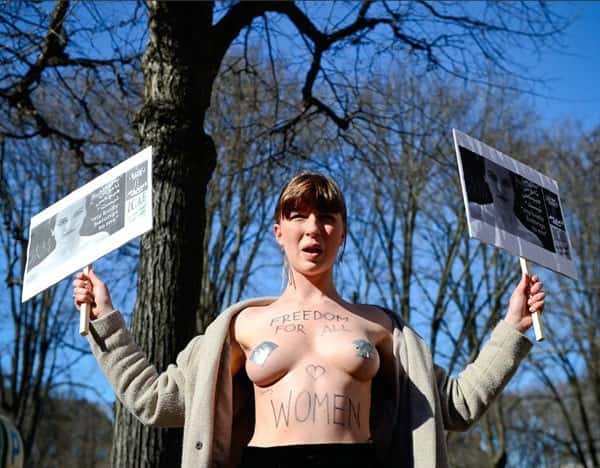 所以她们很不开心,商量了一下就纠集小伙伴上街游行[哔~~]。当然,游行就是要让人一目了然知道你为什么而来,所以她们是以裸上身的方式进行的游行。