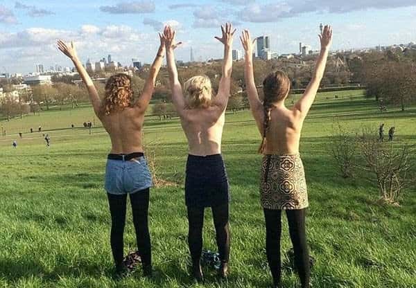 然而相比这种只在纽约街头裸胸的行为,英国那三个女孩又高调了很多,她们走到哪裸到哪。