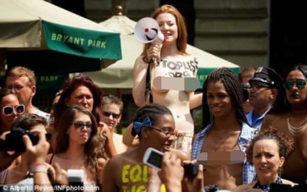 美国无上装组织人员可不一样,她们认真想了想,这可是性别歧视,社会都在追求男女平等,从胸部这里就有差别待遇怎么行。
