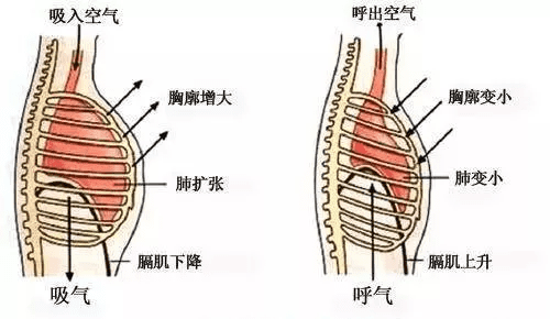 我们可以把胸腔理解为一个气球,因为肺叶的确是储备气体和交换气体的,而腹腔却并非如此,它是闭合的构造,并没有通道和呼吸器官连接,因此,腹腔更像是一个水球。所以毫无疑问,吸气,胸腔的形状和容积会增大,呼气,胸腔的形状和容积缩小,但腹腔只改变形状,不改变容积。虽然也随着吸气形状变大,但内部空间并没有变大,只是改变了这个水球的形状而已,呼气也只是还原到它原有的形状而已,内部空间也并没有缩小。