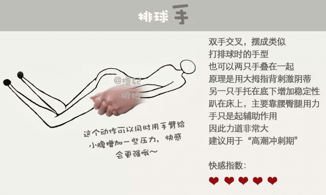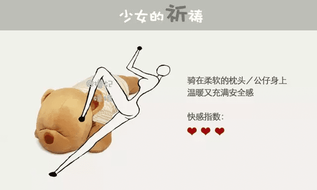 12种姿势按照不同强度分为3部分,每一部分挑选1-2个动作,组合起来,就是一次完美的自我愉悦了。学起来~