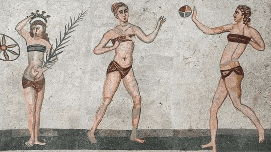 虽然比基尼是最近几十年才流行起来,但其实在上千年前的古罗马,美女们早就开始穿超省布料的泳衣了!