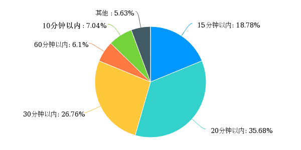 用户使用产品后,实战延长时间为20分钟以内的最多,比例达到了35.68%;其次是30分钟以内的用户,占比为26.76%;15分钟以内的用户比例为18.78%,排在第三位;较少用户反馈实战延长的时间到了60分钟以内,比例为6.1%;此外,还有7.04%的用户认为使用产品后时间延长在5~10分钟之间,不是很满意。