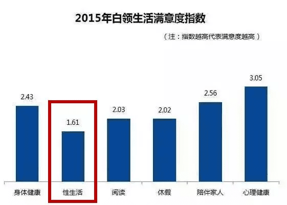 然而,国内某知名招聘网站数年来中国白领满意度指数调查却显示,在白领生活满意度中,最不满意的一项,正是**“性生活”。**
