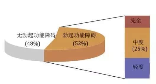 据调查研究显示,年龄40-70岁的男性,有三分之一都患有中度或者重度勃起功能障碍。