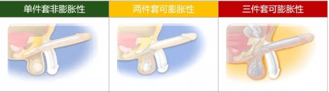 目前在医学上主要使用的是三件套可膨胀性阴茎假体,该装置包括带有阴囊内激活/失活泵的成对圆柱体和独立的水囊。