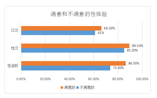 对丁丁感到满意和不满意的人对性的体验也存在差异:对自己丁丁感到不满意的人更加不“性活跃”(73.5% VS86.3%),每日和每周的性活动更少。