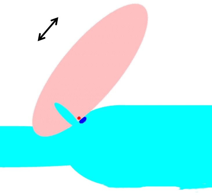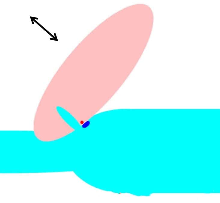 为了更好的解释其中的原理,姐还特意设计了配图,浅蓝色部分是汉纸,深蓝色的点是他的耻骨;粉红色部分是妹纸,红色的点是她的阴豆。