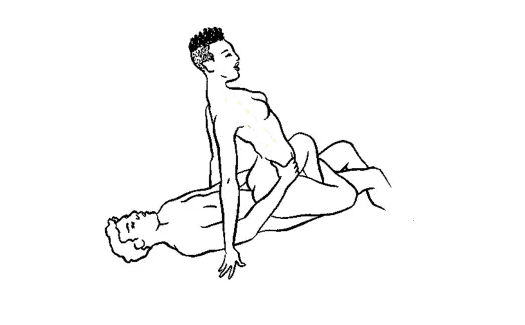 “Reverse 女牛仔 倒骑女牛仔”就是反身倒骑男生的姿势#1。或者可以理解为男生躺下来的Doggy,只不过绝大部分控制掌握在女生手中而已。