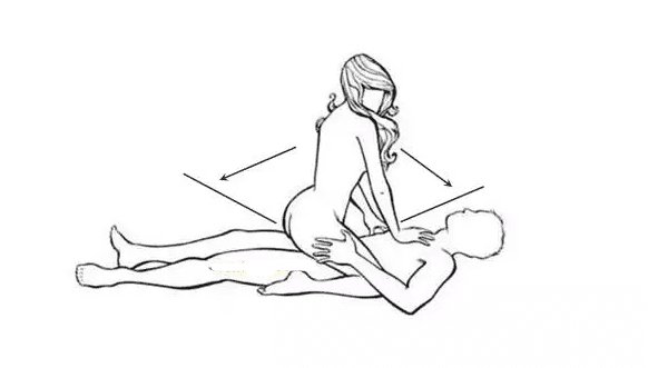 姿势的准备相当简单,男生平躺,女生爬到其身上并跪坐其胯上,然后将丁丁放入。手可以放在他的胸口支撑;或向后斜靠手抓他的脚踝;或在男生弓起双腿抓住他的双膝支撑。身体的角度可灵活调整(如图箭头所示的角度范围)可以直接趴在他身上,也可以后仰。能体现女生活儿好的地方也不多,可以说女牛仔就是证明你能力的时刻!