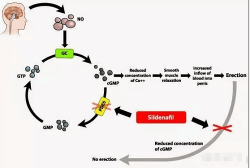 丁丁在受到性刺激之后会产生环磷酸鸟苷酸,这种物质可使海绵体平滑肌松弛,促进血液进入海绵体,从而使丁丁勃起。不过,环磷酸鸟苷酸一旦被 PDE-5 酶水解代谢掉,丁丁则会恢复疲软的状态。