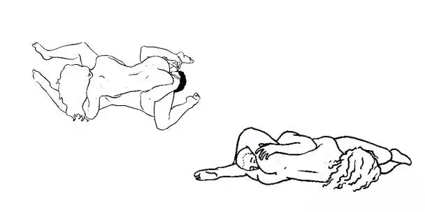 双方互相头冲脚,一人趴在另一个人身上,开始互相啃。一般情况下女生在上比较容易。如果她的体重到了出人命的地步,那么侧躺69也是个不错的选择,就是比普通69费劲一点。
