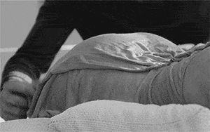 解说:坐在一张舒适的椅子上,让对方盘腿坐在面前的地上,下面垫个枕头可以更舒服。