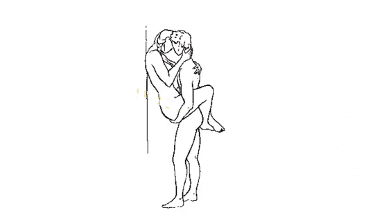 这姿势在电影里的很常见,经常发生在一个淫荡的party结束后。男女主角激情四射的来到酒店房间,房门还没来得急关上就开始深情相拥、激吻,然后姑娘迫不及待的帮着解裤腰带,男的迫不及待的往上撸自己的T恤,随后就是啪啪的往墙上狂怼一通…