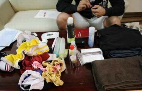 趁这个时间记者就翻了清水健随身携带的包包,发现里面放了至少六条以上的内裤,「没办法男优很容易弄葬内裤嘛。」包包里还有大量的清洁用品,像是牙膏牙刷以及防止口腔发炎的消毒药水等。