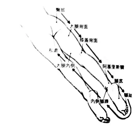 缓慢地从臀部往大腿背部、膝盖背面、阿基里斯腱、脚底、脚趾爱抚、绕过内侧脚踝,然后顺着两腿内侧往上,最后到达私处。