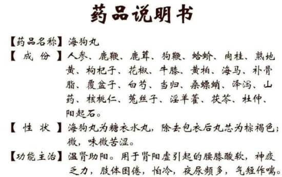 这些「海狗丸」的产品说明书上也明确标明了产品的主要功效: