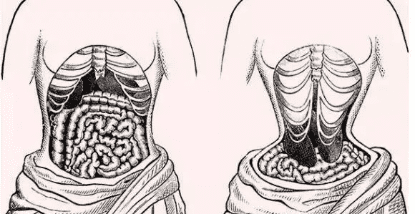 但美丽的背后总得付出一些代价,长期穿这种胸衣的女人轻则内脏错位,重则肋骨被挤压后刺破心肺而死。