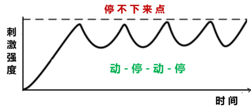 而“动-停”就是要在这个点快要到来之前,停下来,等待冲动过去,然后再继续动。
