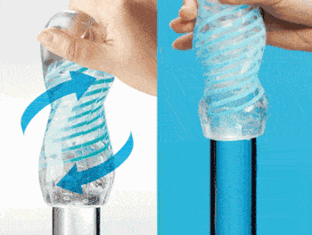 在每一次向下推入和向上挤出的过程中,硅胶杯身都会随着弹簧的螺旋方向进行旋转摩擦,然后回旋刺激着每一处敏感点。