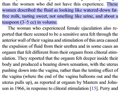 并且在我翻阅了636页的《海蒂性学报告·女人篇》后,几乎没有看到女性对于“潮吹”这一现象的描述,仅有的一点点也只是蜻蜓点水: