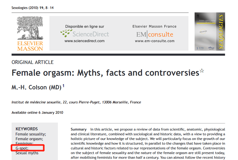 虽然G点是有其独特性的,但更合理地说,目前的研究似乎与马斯特斯和约翰逊在20世纪60年代的研究方向相同: