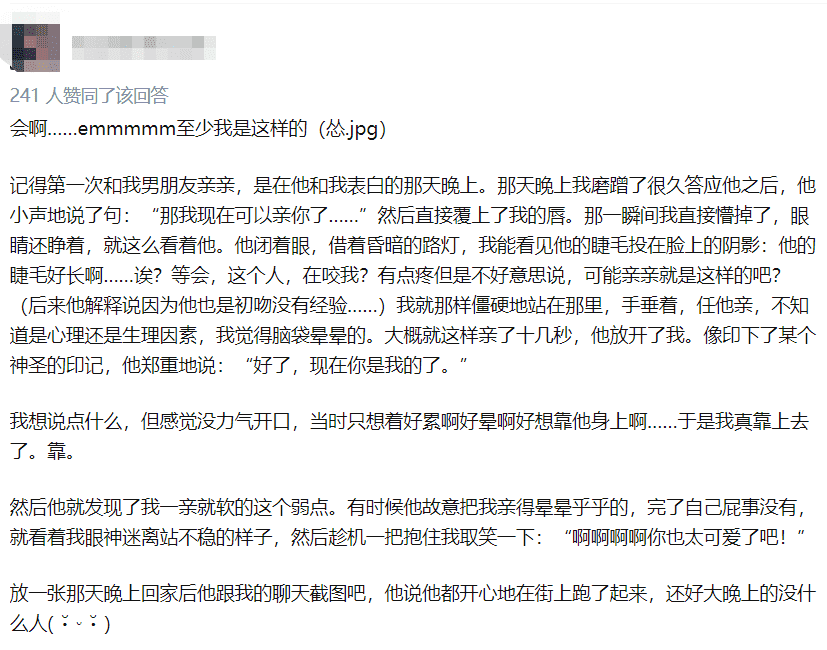 知识今天我在逼乎上冲浪事,被“现实生活中真的会亲吻到双腿甚至身体发软吗?”这则话题吸引住了,点进去一看,网友们都在分享自己的接吻腿软经历。