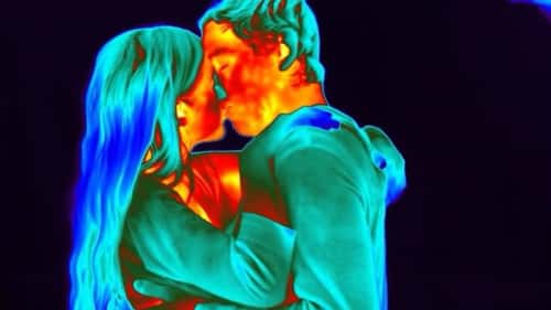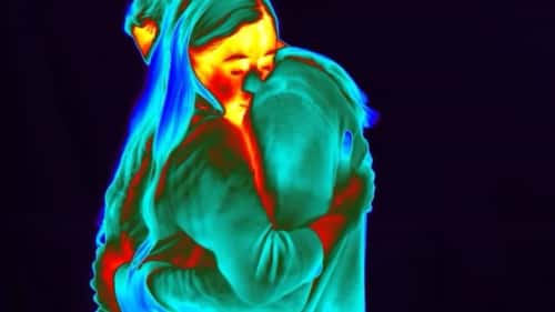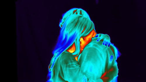 在热成像技术中可以看到,当俩人拥抱在一起时,脸部温度就会开始升高。