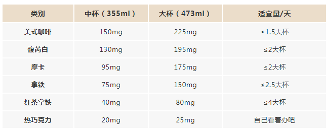在星巴克,每天两大杯美式,或者三杯大杯拿铁,咖啡因的摄入就超标了。