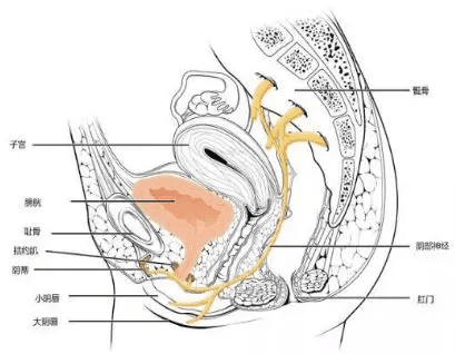 黄色标注部分是连接子宫及肛门之间的神经,女性走后门有高潮,是因为刺激了很多部位。比如肛门高潮的时候,腹肌、骨盆肌肉会收缩,音道和尿道,都能充满强烈的刺激感。